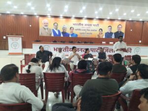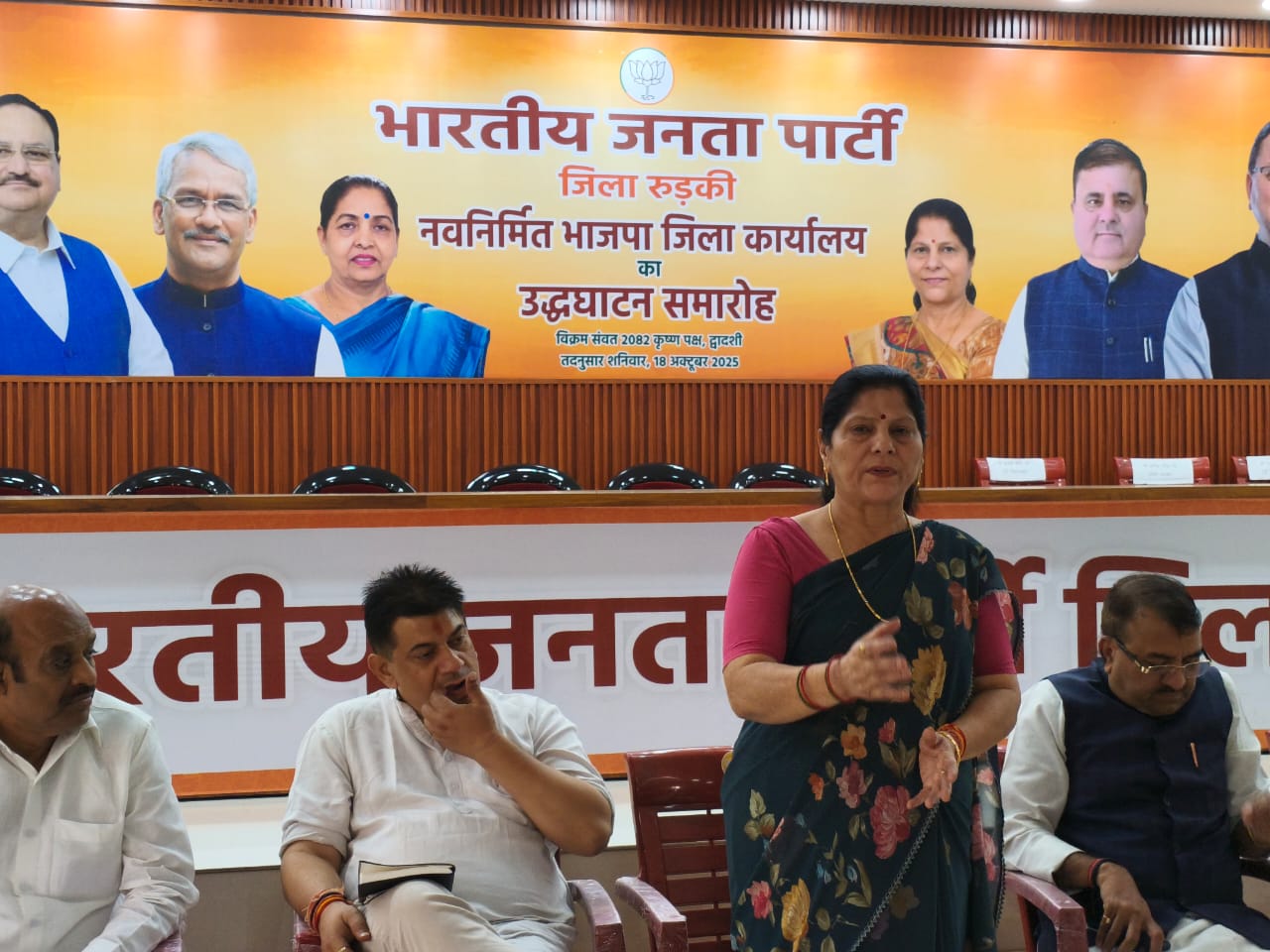 रुड़की, 3 नवम्बर 2025 – उत्तराखंड राज्य स्थापना दिवस के अवसर पर प्रधानमंत्री श्री नरेन्द्र मोदी जी के देहरादून आगमन को लेकर भारतीय जनता पार्टी रुड़की जिला इकाई की एक महत्वपूर्ण बैठक आज जिला कार्यालय में संपन्न हुई। बैठक की अध्यक्षता भाजपा जिला अध्यक्ष डॉ. मधु सिंह ने की, जबकि बैठक का संचालन भाजपा जिला महामंत्री सागर गोयल ने किया।मंचासीन प्रदेश उपाध्यक्ष राकेश गिरी, झबरेड़ा विधानसभा प्रत्याशी राजपाल सिंह, भगवानपुर विधानसभा प्रत्याशी मास्टर सत्यपाल भी रहे