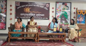 कार्यक्रम में वक्ता डॉक्टर गीता खन्ना जी ने नारी के सात शक्तियों का वर्णन करते हुए बताया कि नारी ही वह स्रोत है जो आने वाली पीढ़ियों को संस्कार देती है समाज का निर्माण करती है और भारत को राष्ट्रगुरु बनाने का मार्ग भी एक माता है दिखायेगी, मां के द्वारा शिक्षित, संस्कारित बालक ही देश के नेता बनेंगे, कर्णधार बनेंगे और देश को आगे ले जाएंगे।