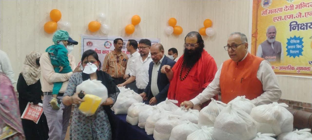 हरिद्वार। प्रधानमंत्री टी.बी. मुक्त भारत अभियान के तहत एसएमजेएन कालेज में आयोजित कार्यक्रम में अखाड़ा परिषद एवं मनसा देवी मंदिर ट्रस्ट के अध्यक्ष श्रीमहंत रविंद्रपुरी, कालेज के प्राचार्य प्रो.सुनील कुमार बत्रा, मुख्य चिकित्सा अधिकारी डा.आरके सिंह ने निक्षय मित्र योजना के तहत दौ सौ टीबी रोगियों को पोषण किट वितरित की।