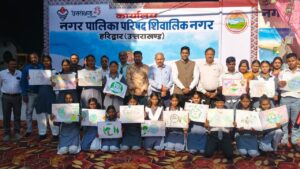 रोशनाबाद। उत्तराखंड राज्य स्थापना दिवस (रजत जयंती वर्ष) के अवसर पर आयोजित कार्यक्रमों की श्रृंखला के अंतर्गत नगर पालिका शिवालिक नगर द्वारा नगर पालिका कार्यालय परिसर में चित्रकला एवं निबंध प्रतियोगिता के विजेताओं तथा पर्यावरण मित्रों (स्वच्छता कर्मियों) को सम्मानित किया गया।