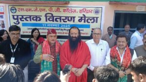 हरिद्वार। एसएमजेएन महाविद्यालय में उत्तराखंड मुक्त विश्वविद्यालय हल्द्वानी द्वारा निःशुल्क पुस्तक वितरण कार्यक्रम के अंतर्गत विशाल पुस्तक मेले का आयोजन किया गया। जिसमे सैकड़ों छात्र-छात्राओं एवं अध्यापकों को निःशुल्क पुस्तकें वितरित की गईं। कार्यक्रम की अध्यक्षता अखिल भारतीय अखाड़ा परिषद एवं कॉलेज प्रबन्ध समिति के अध्यक्ष श्रीमहंत रविन्द्रपुरी महाराज ने की। इस अवसर पर श्रीमहंत रविन्द्रपुरी ने कहा कि पुस्तकंे अंतर्मन को उज्जवल बनाती हैं। इसी कारण वो रत्नों से भी मूल्यवान होती हैं। पुस्तकों के बिना परिपूर्ण ज्ञान की कल्पना भी नहीं की जा सकती। उत्तराखंड मुक्त विश्वविद्यालय के सहायक क्षेत्रीय निदेशक एवं समन्वयक डा.बृजेश बनकोटी ने कहा कि उत्तराखंड मुक्त विश्वविद्यालय जन-जन तक शिक्षा पहुंचाने को कटिबद्ध हैं। कहा कि मुक्त विश्वविद्यालय विद्यार्थियों की आवश्यकताओं को ध्यान में रखते हुए निःशुल्क पुस्तक वितरण कार्यक्रमों का आयोजन कर रहा है। उन्होंने विद्यार्थियों को पुस्तकों के महत्व के बारे में बताते हुए कहा कि पुस्तकों का व्यक्ति के ज्ञान बढ़ाने में महत्वपूर्ण योगदान है। उन्होंने इस योजना का लाभ सभी से उठाने की अपील करते हुए कहा कि रुड़की क्षेत्रीय केंद्र के अंदर 7 मेलो का आयोजन किया जा रहा है। महाविद्यालय के प्राचार्य प्रो.सुनील कुमार बत्रा ने उत्तराखंड मुक्त विश्वविद्यालय द्वारा निःशुल्क पुस्तक वितरण के कार्यक्रम की प्रशंसा करते हुए कहा कि छात्रों को पुस्तकों द्वारा एक बेहतर भविष्य की ओर बढ़ाने का एक शानदार कदम हैं। कार्यक्रम में वित्त अधिकार शिक्षा सतेंद्र डबराल, एचईसी कॉलेज से तारा सिंह, श्रीसाई इंस्टीट्यूट के संजीव शर्मा सहित अन्य सहयोगियों का विशेष योगदान रहा। निःशुल्क पुस्तक वितरण कार्यक्रम कल भी जारी रहेगा।