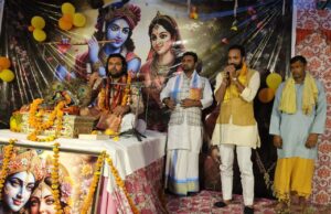 होता है।बिना भागवत को सुने ना तो जीवन को समझा जा सकता है और ना ही भारतीय संस्कृति को।संसार में सब कुछ तो प्राप्त किया जा सकता है किंतु मोक्ष प्राप्त करना अर्थात स्वयं को जानना बहुत कठिन है और इसका एकमात्र स्रोत भागवत गीता ही है।कथा में अतिथि के रूप में पहुंचे युवा भाजपा नेता तथा वरिष्ठ समाजसेवी इंजीनियर चैरब जैन ने विचार व्यक्त करते हुए कहा कि भागवत आत्मज्ञान तथा जीवन उपयोगी ज्ञान का आधार है।भागवत अनुष्ठान परमार्थ का सबसे बड़ा यज्ञ है,इससे न केवल मानवता का उद्धार होता है,बल्कि भारत के इतिहास व संस्कृति को भी समझने का अवसर प्राप्त होता है।कथा में पहुंचे इंजीनियर चैरब जैन ने महाराज जी से आशीर्वाद प्राप्त किया तथा उनका सम्मान किया।इस अवसर पर बड़ी संख्या में भक्तगण मौजूद रहे।