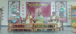श्रीमती मनीषा सिंघल ने कहा कि पर्यावरण के प्रति मातृ शक्ति को आने वाली पीढ़ी को जागृत करना होगा, उन्होंने कहा पर्यावरण नहीं रहेगा तो परिवार कैसे जीवित रह पाएंगे, पर्यावरण का विनाश हम सब का विनाश है। इसका संरक्षण हम सभी का उत्तरदायित्व है। कार्यक्रम की प्रस्तावना प्रस्तुत करते हुए भावना शर्मा ने बताया कि यह सप्तशती संगम कार्यक्रम समाज में महिलाओं को एक दिशा निर्देशन का कार्य करेंगे जो हमारी परिवार की धुरी माताओं एवं भावी माताओं यानि हमारी बालिकाओं को भारतीय संस्कृति से परिचय बोध भी करायेंगे।