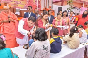 मुख्यमंत्री ने परमपूज्य पद्मभूषण ब्रह्मलीन स्वामी सत्यमित्रानंद गिरी जी महाराज को श्रद्धासुमन अर्पित करते हुए परमपूज्य जगद्गुरु महामंडलेश्वर स्वामी यतीन्द्रानन्द गिरि जी महाराज सहित सभी संतजनों को साष्टांग प्रणाम किया। उन्होंने कहा कि संतों की दिव्य उपस्थिति मन और आत्मा में नई ऊर्जा का संचार करती है।