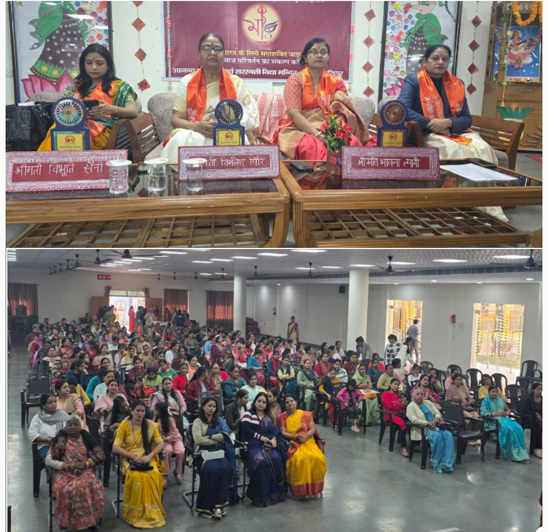 कार्यक्रम में मुख्य वक्ता श्रीमती भावना त्यागी जी ने बताया कि भारतीय नारी मात्र एक व्यक्ति नहीं अपितु एक संपूर्ण चेतना है जो परिवार की आधारशिला, समाज की प्रेरणा और राष्ट्र की आत्मा है। कार्यक्रम की दूसरी वक्ता श्रीमती विभूति सैनी जी ने अपने उद्बोधन में बताया कि भारतीय महिला के भीतर अनेक ऐसे अंतर्निहित गुण विद्यमान हैं जो बाहरी दिखावे से परे होते हुए भी उसे महत्वपूर्ण बनाते हैं।