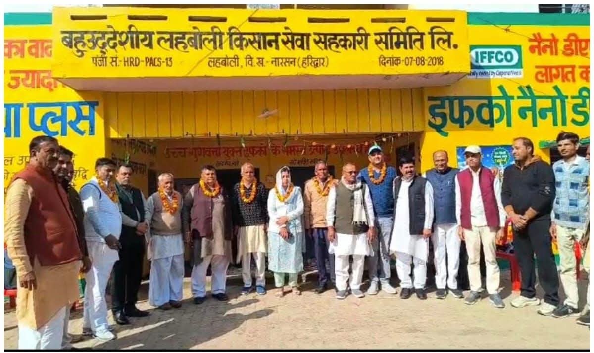 मंगलौर। नारसन ब्लॉक के लहबोली बहुउद्देशीय किसान सेवा सहकारी समिति के कार्यालय में बुधवार को हवन पूजा के साथ नवनिर्वाचित चेयरमैन विभा चौधरी ने सभी निर्वाचित सदस्यों और क्षेत्र के मोजीज़ लोगों के साथ मिलकर अपना पदभार संभाला। कार्यक्रम में पहुंचे मौजजीज़ लोगों और समिति स्टाफ ने नवनिर्वाचित चेयरमैन और निर्वाचित सभी सदस्यों का फूलमाला पहनाकर स्वागत किया।