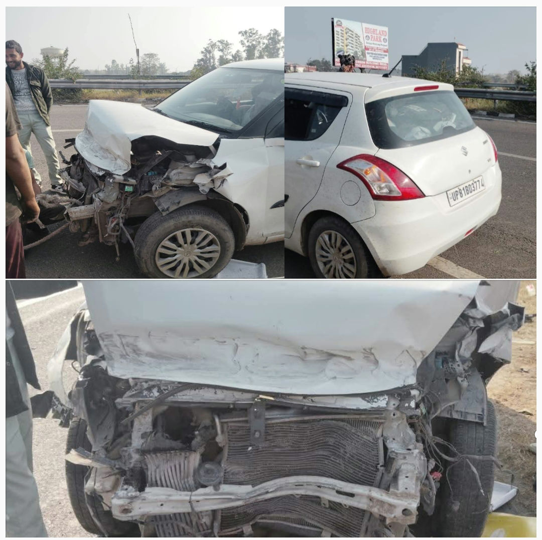बहादराबाद में रघुनाथ मॉल के समीप ओवर स्पीड स्विफ्ट गाड़ी दुर्घटनाग्रस्त।