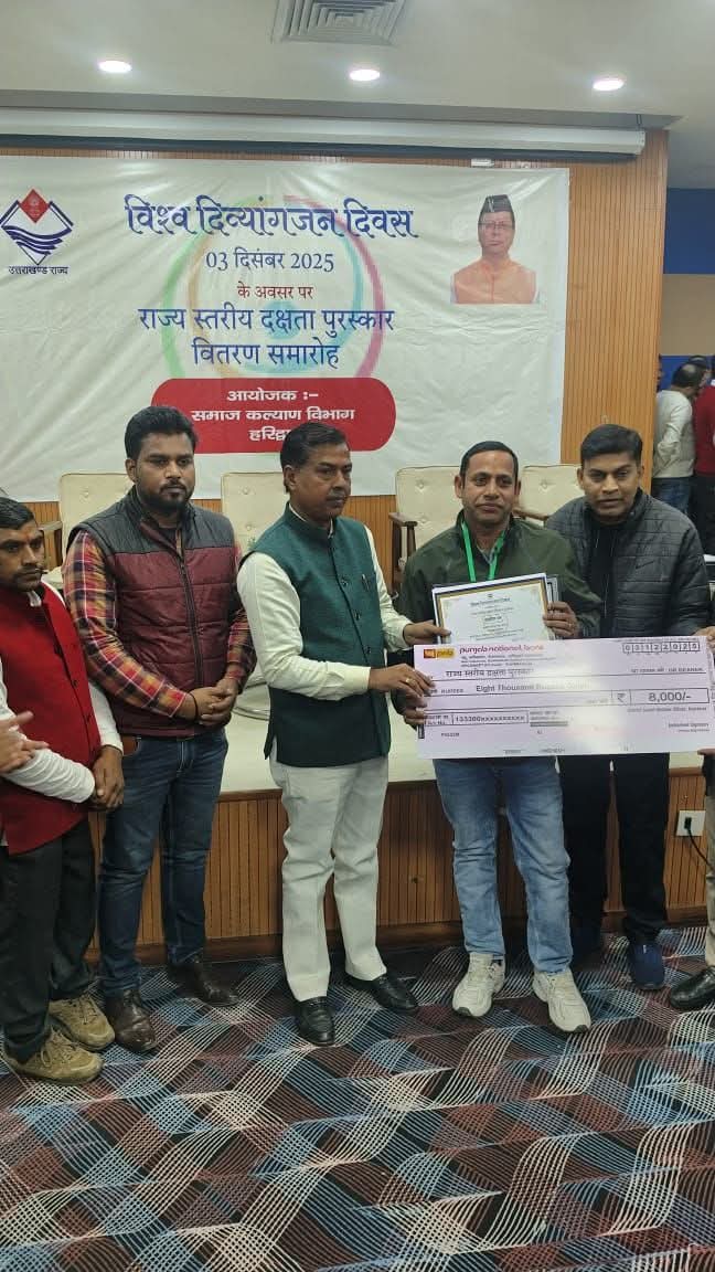 हरिद्वार। समाज कल्याण विभाग, उत्तराखंड सरकार द्वारा विश्व दिव्यांग दिवस के उपलक्ष्य में अपने-अपने कार्यक्षेत्र में उत्कृष्ट योगदान देने वाले दिव्यांग राजकीय कार्मिकों एवं शिक्षकों को सम्मानित एवं पुरस्कृत किया गया। दिव्यांग कार्मिकों की सुविधा को ध्यान में रखते हुए इस वर्ष दक्षता पुरस्कार जनपद स्तर पर वितरित किए गए।