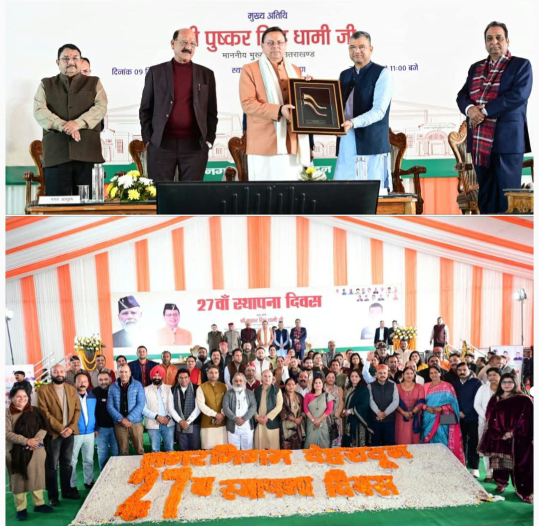 कार्यक्रम को संबोधित करते हुए, मुख्यमंत्री धामी ने कहा कि पिछले 27 वर्षों में देहरादून नगर निगम ने नागरिक सुविधाओं के विस्तार और आधुनिक शहरी प्रबंधन के क्षेत्र में अनेक उपलब्धियाँ हासिल करते हुए, देहरादून को एक स्वच्छ, सुरक्षित और सुव्यवस्थित नगर के रूप में विकसित करने में महत्वपूर्ण भूमिका निभाई है। उन्होंने कहा कि देहरादून नगर निगम स्थापना दिवस का ये अवसर उन उपलब्धियों का उत्सव मनाने के साथ-साथ आने वाले समय की चुनौतियों को ध्यान में रखते हुए, विकास के सपनों को धरातल पर साकार करने का भी है। मुख्यमंत्री ने कहा कि प्रधानमंत्री श्री नरेंद्र मोदी के नेतृत्व में भारत विकास और समृद्धि के नए-नए कीर्तिमान स्थापित कर रहा है। आज देश में अनेकों परियोजनाओं के माध्यम से शहरी क्षेत्रों के विकास को नई दिशा प्रदान की जा रही है। स्वच्छ भारत मिशन के माध्यम से देश के लाखों शहरों, कस्बों और नगरों में साफ-सफाई की एक नई संस्कृति विकसित हुई है। अमृत योजना के द्वारा शहरी क्षेत्रों में जल आपूर्ति, सीवरेज और हरित स्थानों को विकसित किया गया है। इसी तरह स्मार्ट सिटी मिशन नगर विकास का एक आदर्श नगर विकास के रूप में उभरा है।