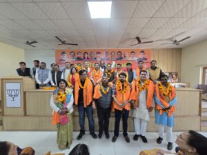 हरिद्वार। आज भारतीय जनता पार्टी जिला कार्यालय जगजीतपुर हरिद्वार पर नवनियुक्त मोर्चो के जिला अध्यक्षों का स्वागत अभिनंदन समारोह आयोजित किया गया। कार्यक्रम में मुख्य अतिथि के रूप में जिला हरिद्वार भाजपा सहप्रभारी दीपक धमीजा रहे। कार्यक्रम की अध्यक्षता जिला अध्यक्ष आशुतोष शर्मा और संचालन जिला महामंत्री हीरा सिंह बिष्ट और संजीव चौधरी ने किया। नवनियुक्त जिला अध्यक्ष को पार्टी पदाधिकारी द्वारा फूल माला पहनकर और पार्टी का पटका पहनकर स्वागत किया। गया। इस अवसर पर जिला अध्यक्ष आशुतोष शर्मा ने सभी को बधाई और शुभकामनाएं देते हुए कहा कि नवनियुक्त मोर्चा के जिला अध्यक्ष बनने से पार्टी को मजबूती प्रदान होगी। और सभी मोर्चों के अध्यक्ष अपने-अपने क्षेत्र में पार्टी की नीति को जन-जन तक पहुंचाने का काम करेंगे। उन्होंने कहा कि पार्टी के लिए सभी मोर्चे महत्वपूर्ण है। युवा मोर्चा का उद्देश्य युवाओं को पार्टी की विचारधारा में लाना है। और पार्टी के विचारधारा को युवाओं के बीच में ले जाकर युवाओं में पार्टी के प्रति आस्था और विश्वास जगाना है। उन्होंने महिला मोर्चा, किसान मोर्चा, अल्पसंख्यक मोर्चा ,ओबीसी मोर्चा के जिला अध्यक्षों को बधाई और शुभकामनाएं दी