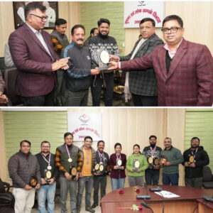 कैरम प्रतियोगिता में पुरूष वर्ग के सिंगल्स श्रेणी के विजेता अतुल डिमरी एवं उप विजेता गजेन्द्र सिंह को पुरस्कृत किया गया। कैरम प्रतियोगिता के डबल्स श्रेणी में विजेता अतुल डिमरी एवं गजेन्द्र सिंह, उप विजेता चेतन कुमार पाण्डेय एवं राम सिंह परजोली को पुरस्कृत किया गया। यह खेल प्रतियोगिता विगत 12 एवं 14 दिसम्बर, 2025 को सूचना भवन सभागार में आयोजित की गई थी। इस अवसर पर संघ के समस्त पदाधिकारीगण एवं कर्मचारीगण उपस्थित थे।