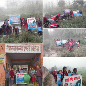 उन्होंने कहा कि जल प्रदूषण एवं पीने लायक पानी, जल की घटती मात्रा दुनिया के सामने एक बड़ी चुनौती बन चुका है। प्रधानाचार्य बलराम गुप्ता ने कहा कि नदियों का पानी प्रदूषित हो चुका है। इन नदियों को हमारी संस्कृति में हमेशा पवित्र स्थान दिया जाता रहा है। कार्यक्रम अधिकारी मीनू यादव ने कहा कि आमतौर पर गंगाजल को देवी-देवताओं को अर्पण करते हैं। हमें नदियों के जल को शुद्ध रखने के प्रति सचेत रहना चाहिये। इस अवसर पर आयोजित स्पर्श गंगा रैली को प्रबन्धक डॉ0 गुप्ता ने नमामि गगें झंडी दिखाकर रवाना किया। स्वंयसेवियों ने बादशाहपुर स्थित बांण गंगा किनारे का भ्रमण कर स्वच्छता अभियान चलाया। जन समुदाय को नदियों के प्रति प्रदूषण मुक्त बनाने के लिए सचेत किया। कैम्प कमाण्डर राधिका के निर्देशन में मीनू, वंशिका, राधिका, पूजा, शिवानी, पायल, उपासना, मुस्कान, सगुन, पायल, नौरती, निधि, आशा, कनिका, मानसी, नेहा , वर्षा, अल्का, नीतू, वर्षा रीता, दीपा, कामनी, सुहानी, खुशी, श्वेता, प्रियम, नन्दनी, प्रीति द्वारा संास्कृतिक कार्यक्रम प्रस्तुत किये गये तथा ओमपाल सिंह व जावेद ने स्पर्श गगंा रैली में अपना विशेष योगदान दिया।