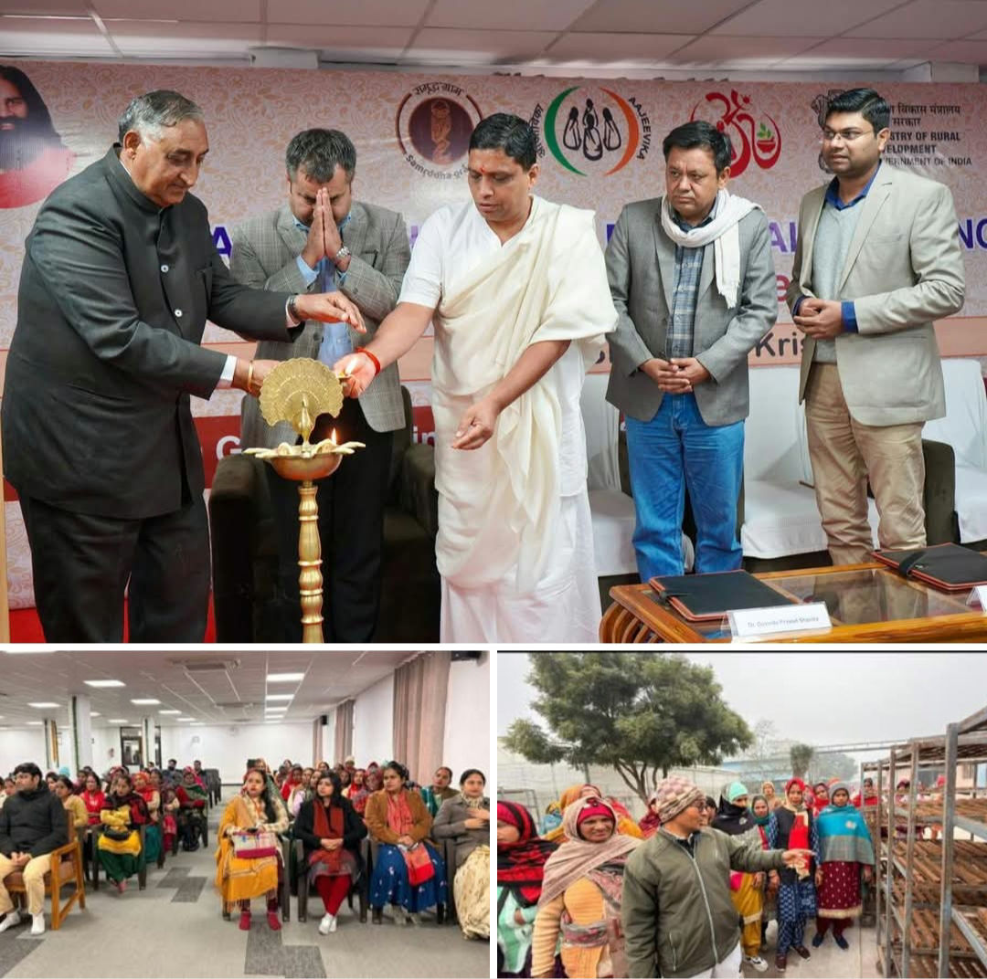 हरिद्वार। पतंजलि की ओर से आयोजित समृद्ध ग्राम पतंजलि प्रशिक्षण केंद्र में तीन दिवसीय एकीकृत कृषि क्लस्टर प्रशिक्षण कार्यक्रम का समापन आध्यात्मिक ऊर्जा एवं शैक्षणिक प्रभाव के साथ सफलतापूर्वक संपन्न हुआ। यह प्रशिक्षण कार्यक्रम ग्रामीण समृद्धि के उद्देश्य से एकीकृत एवं सतत कृषि पद्धतियों को बढ़ावा देने के लिए आयोजित किया गया। जिसमें 150 से अधिक स्वयं सहायता समूह (एसएचजी) के सदस्यों ने आवासीय सुविधा के साथ सक्रिय सहभागिता की। प्रशिक्षण के अंतिम दिवस का शुभारंभ हवन के साथ हुआ। जो शुद्धता एवं सकारात्मक संकल्प का प्रतीक रहा। इसके पश्चात दीप प्रज्वलन कार्यक्रम आयोजित किया गया। इस अवसर पर आचार्य बालकृष्ण ने कार्यक्रम की शोभा बढ़ाई तथा प्रतिभागियों को आशीर्वाद प्रदान करते हुए कहा कि एकीकृत एवं टिकाऊ कृषि पद्धतियां ही आत्मनिर्भर गांव और समृद्ध ग्रामीण अर्थव्यवस्था का आधार हैं। उन्होंने प्रतिभागियों को प्रकृति के अनुरूप खेती अपनाने और कृषि को बहुआयामी स्वरूप देने के लिए प्रेरित किया। कार्यक्रम के दौरान प्रतिभागियों ने अपने अनुभव साझा किए तथा प्रशिक्षण के दौरान प्राप्त व्यावहारिक ज्ञान एवं क्षेत्रीय अनुभव के प्रति संतोष व्यक्त किया। इस अवसर पर खंड विकास अधिकारी (बीडीओ) बहादराबाद मानस मित्तल ने प्रतिभागियों को संबोधित करते हुए कहा कि एकीकृत कृषि मॉडल गांव स्तर की अर्थव्यवस्था को सशक्त बनाने के साथ-साथ किसानों एवं एसएचजी सदस्यों की आजीविका को स्थायी रूप से मजबूत करता है।