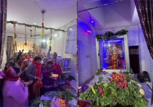 मनकामेश्वरी दुर्गा देवी मंदिर पञ्चमी अम्बर तालाब में मंदिर प्रबंधन समिति अध्यक्ष अनुज कुमार जैन के तत्वावधान में गतवर्षो की भांति समस्त जैन परिवार व एकत्र भक्तजनों ने सकराय माँ शाकुंभरी देवी के जन्मोत्सव को मनाया शाकुंभरी देवी जन्मोत्सव अवसर पर आचार्य राजकुमार कौशिक व आचार्य धुर्व कौशिक ने विधिवत माँ शाकुंभरी को हरीभरी सब्जियों व फलाहार चढ़ा कर पूजा अर्चना कराई आचार्य ने भक्तजनों को शक्ति व प्रकृति की देवी माँ शाकुम्भरी के जन्मोत्सव का महत्व बताते हुए कहा कि जब धरती पर अकाल की स्थिति थी तब भगवती दुर्गा स्वरूप माँ शाकुम्भरी देवी ने भक्तों की रक्षा करने के लिए धरती पर बरसात कर फल व हरि सब्जियों प्रदान कर धरती लोक को बचाया था इस कारण उन्हें शाकाहारी सकराय शाकुंभरी देवी के नाम से पूजा जाता है और भक्तजन माँ शाकुंभरी देवी के आशीर्वाद से सुख समृद्धि व सम्पनता प्राप्त करने है माता के स्वरूप को सौम्य व करुणामय माना जाता है पौष पूर्णिमा के दिन माँ शाकुंभरी देवी जन्मोत्सव को प्राकट्य दिवस स्वरूप मनाया जाता है शाकुंभरी देवी फ़सल व सब्जियों व अन्न की देवी है उनकी पूजा अर्चना से अकाल मृत्यु व रोग व प्राकतिक आपदाओं से मुक्ति मिलती हैं इस दिन गंगा व यमुना में स्नान करने व दान पुण्य करने का महत्व है इस अवसर पर मनोज कुमार जैन, नवीन कुमार जैन, यश जैन, क्रीश जैन, नैना,अलका जैन, दीपा जैन, ईशा जैन, वर्णिका जैन,किर्शना,सांची जैन, कीर्ति जैन, सचिन गोंड़वाल,अवनीश गर्ग,रामकुमार मित्तल,राखी वर्मा,सरला, ऋतु,रजनी कौशिक,माया गुप्ता,रेखा जैन आदि मौजूद रहे।