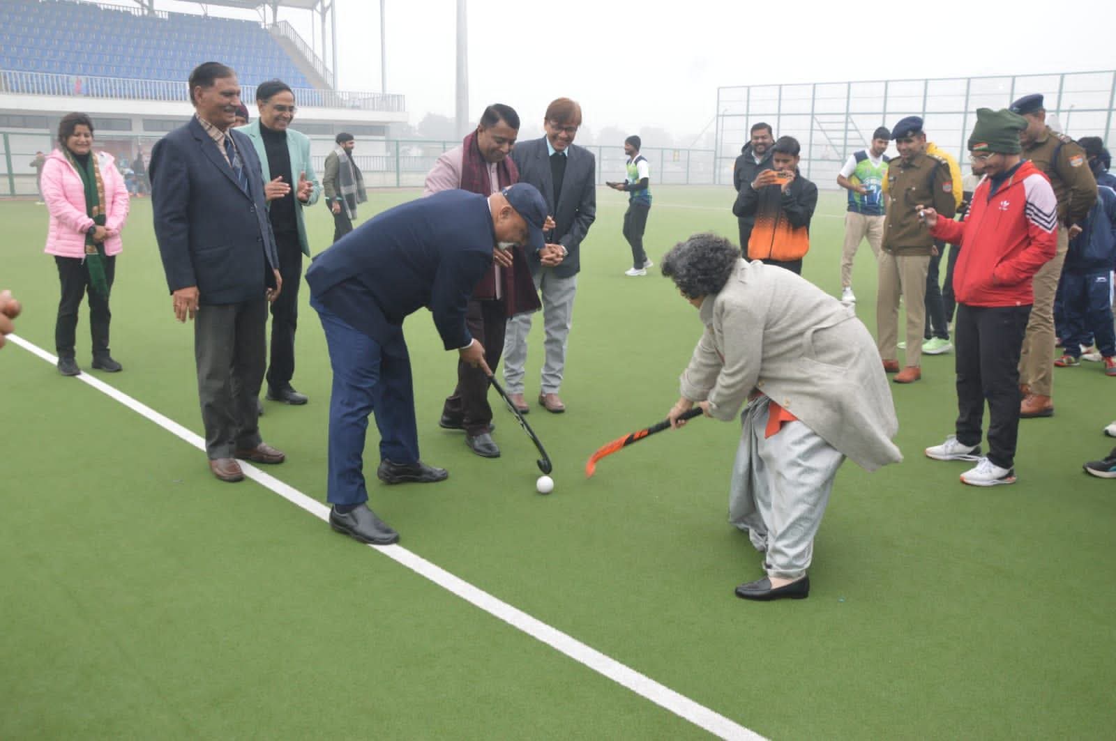 हरिद्वार। खेल हार-जीत नही बल्कि सीख-जीत की मानसिकता को विकसित करने की अनुपम विद्या है। खिलाडी को खेल मे लक्ष्य के प्रति सजग एवं निरन्तर प्रयत्नशील बने रहने पर लक्ष्य प्राप्ति मे सफलता मिलती है। गुरुकुल कांगडी समविश्वविद्यालय द्वारा भारतीय विश्वविद्यालय संघ, नई दिल्ली के तत्वावधान में रोशनाबाद स्थित वंदना कटारियाॅ हाॅकी स्टेडियम मे आयोजित की जा रही उत्तर-क्षेत्र अन्तर विश्वविद्यालय हाॅकी पुरूष वर्ग प्रतियोगिता के शुभारम्भ अवसर पर अपर पुलिस महानिदेशक एवं प्रमुख सचिव खेल अमित सिन्हा ने अपने सम्बोधन मे यह बात कही। उन्होने प्रतिभागी टीमों का आहवान किया कि खेल मे प्रतिभा की पहचान एवं उसे तराशने मे कोच की कुशलता जरूरी है। कार्यक्रम की अध्यक्षता करते हुये समविश्वविद्यालय कुलपति प्रो0 प्रतिभा मेहता लूथरा ने कहाॅ कि खेल का स्वरूप वृहद यज्ञ के समान है, जिसमे खेलने वाला खेल तथा कुशलता रूपी आहूति से श्रेष्ठता प्राप्त करता है। जिसमे समय एवं तकनीकि जानकारी रूपी समिद्या की आवश्यकता पडती है। उदघाटन कार्यक्रम का शुभारम्भ यज्ञ के माध्यम से आरम्भ हुआ जिसमे मुख्य अतिथि अमित सिन्हा (आई0पी0एस0) अपर पुलिस महानिदेशक एवं प्रमुख सचिव खेल, उत्तराखण्ड सरकार ने भी अपनी आहूति दी। उन्होने खेलो का शुभारम्भ यज्ञ के माध्यम से कराने को एक विशिष्ट पहल बताते हुये गुरुकुलीय परम्परा को सराहा। उत्तर-क्षेत्र की कुम्भ-रूपी इस प्रतियोगिता मे पंजाब, दिल्ली, उ0प्र0, उत्तराखंड, हिमाचल प्रदेश, हरियाणा, कश्मीर आदि प्रदेशों की 42-विश्वविद्यालयों की टीमें प्रतिभाग कर रही है। दिनांक 11.01.2026 से 17.01.2026 तक आयोजित यह प्रतियोगिता नाॅक-आउट कम लीग बेसिस पर आयोजित की जा रही है। प्रतियोगिता का उदघाटन मैच कलस्टर यूनिवर्सिटी, जम्मू तथा यूनिवर्सिटी आॅफ इलाहाबाद के मध्य आरम्भ हुआ जिसमे यूनिवर्सिटी आॅफ इलाहाबाद ने कलस्टर यूनिवर्सिटी, जम्मू को 2-0 से परास्त किया। दूसरा मैच जी0बी0 पंत वि0वि0, पंतनगर तथा सी0एस0जे0एम0 विश्वविद्यालय, कानपुर के खेला गया जिसमे कानपुर ने पंतनगर को 6-0 से परास्त किया। डाॅ0 बी0आर0 आगरा तथा कुमायु वि0वि0 के बीच हुए मैच मे आगरा 3-2 से विजयी रही। आई0आई0टी0 रूडकी तथा गुरू जम्बेशवर, मुरादाबाद के बीच हुऐ मैच मे मुरादाबाद 3-2 से विजयी रहीं