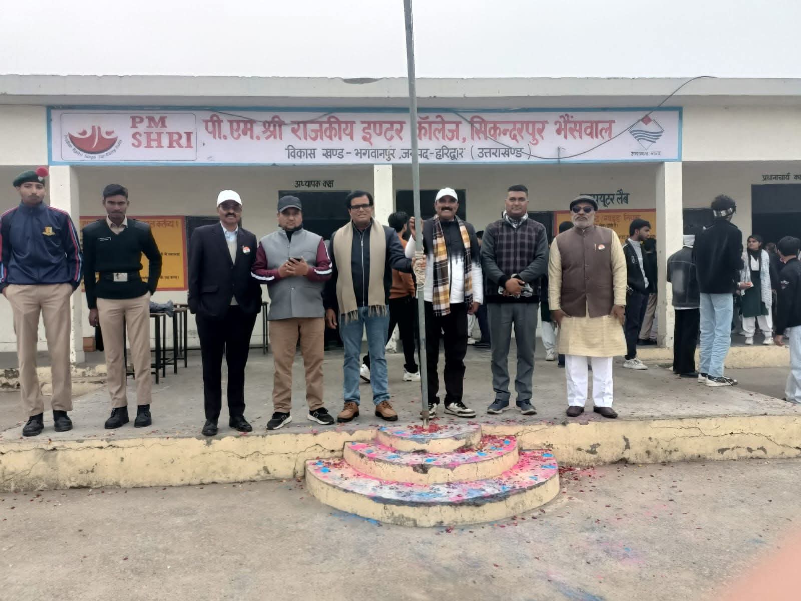 भगवानपुर । पीएम श्री राजकीय इंटर कॉलेज सिकंदरपुर भैंसवाल के प्रांगण में 77वेंगणतंत्र दिवस पर प्रधानाचार्य भीकम सिंह और राव फरमूद पूर्व कैबिनेट स्तरीय मंत्री ने संयुक्त रूप से ध्वजारोहण किया। संदीप कौशिक के संचालन में छात्र छात्राओं ने देश भक्ति भाव से गणतंत्र दिवस उत्साह पूर्वक मनाया । कल्पना बड़थ्वाल और प्रीति भारद्वाज ने विभाग द्वारा प्रेषित संदेश का वाचन किया। शिक्षक विश्वास कुमार ने इस अवसर पर अपने सम्बोधन में छात्र छात्राओं को अपने देश के श्रेष्ठ नागरिक बनकर सेवा भाव रखने को प्रेरित किया। इसी दिन हमारे संविधान ने लचीले और कठोर दोनों स्वरुप में देश को मजबूती प्रदान की और समान कानून से सभी को सशक्त बनाया । इस अवसर पर शिक्षक अश्विनी कुमार, दीवान सिंह टोलियां, विश्वास कुमार , प्रमोद कुमार कपरुवान, मोहनराज कन्याल, सुशील कुमार सैनी मनोज कुमार शर्मा ,राकेश कुमार, देवीपाल सिंह अजय कुमार शर्मा, शिवानी प्रकाश ,प्रीति भारद्वाज कार्यालय कर्मचारी जितेन्द्र कुमार हलदर, कल्पना देवी,आनंद सिंह नेगी, अंकुर मिश्रा एवं पीटीए अध्यक्ष असलम, एस एम सी अध्यक्ष संजय धीमान, राव मोबीन, पवन कुमार, प्रियंका, सरिता, सुमन, नीतू एवं छात्र छात्राओं की सहभागिता रही ।