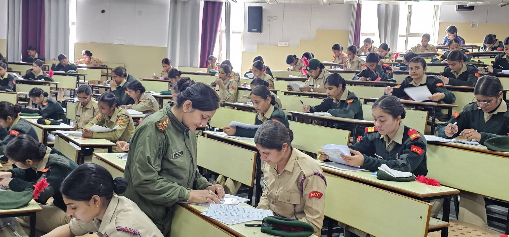 लिखित परीक्षा में कैडेट्स से तीन वर्ष में उनके द्वारा पढ़े गए पाठ्यक्रम में से ड्रिल, मैप रीडिंग, वेपन ट्रेनिंग, फील्ड क्राफ्ट- बैटल क्राफ्ट व करेंट अफेयर्स आदि विषय से संबंधित प्रश्न पूछे गए ।
