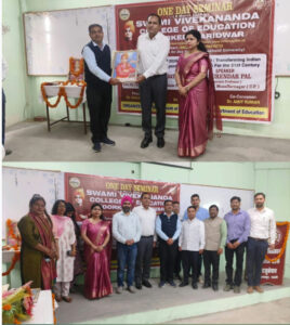रुड़की। स्वामी विवेकानंद कॉलेज ऑफ एजुकेशन, रुड़की में अर्थशास्त्र विभाग एवं शिक्षा विभाग के संयुक्त तत्वावधान में एक दिवसीय संगोष्ठी का सफल आयोजन किया गया। संगोष्ठी का उद्देश्य विद्यार्थियों एवं शिक्षकों को वर्तमान आर्थिक परिदृश्य तथा नई शिक्षा नीति के महत्वपूर्ण पहलुओं से अवगत कराना था। कार्यक्रम में महाविद्यालय के शिक्षकगण एवं छात्र-छात्राओं ने उत्साहपूर्वक भाग लिया।