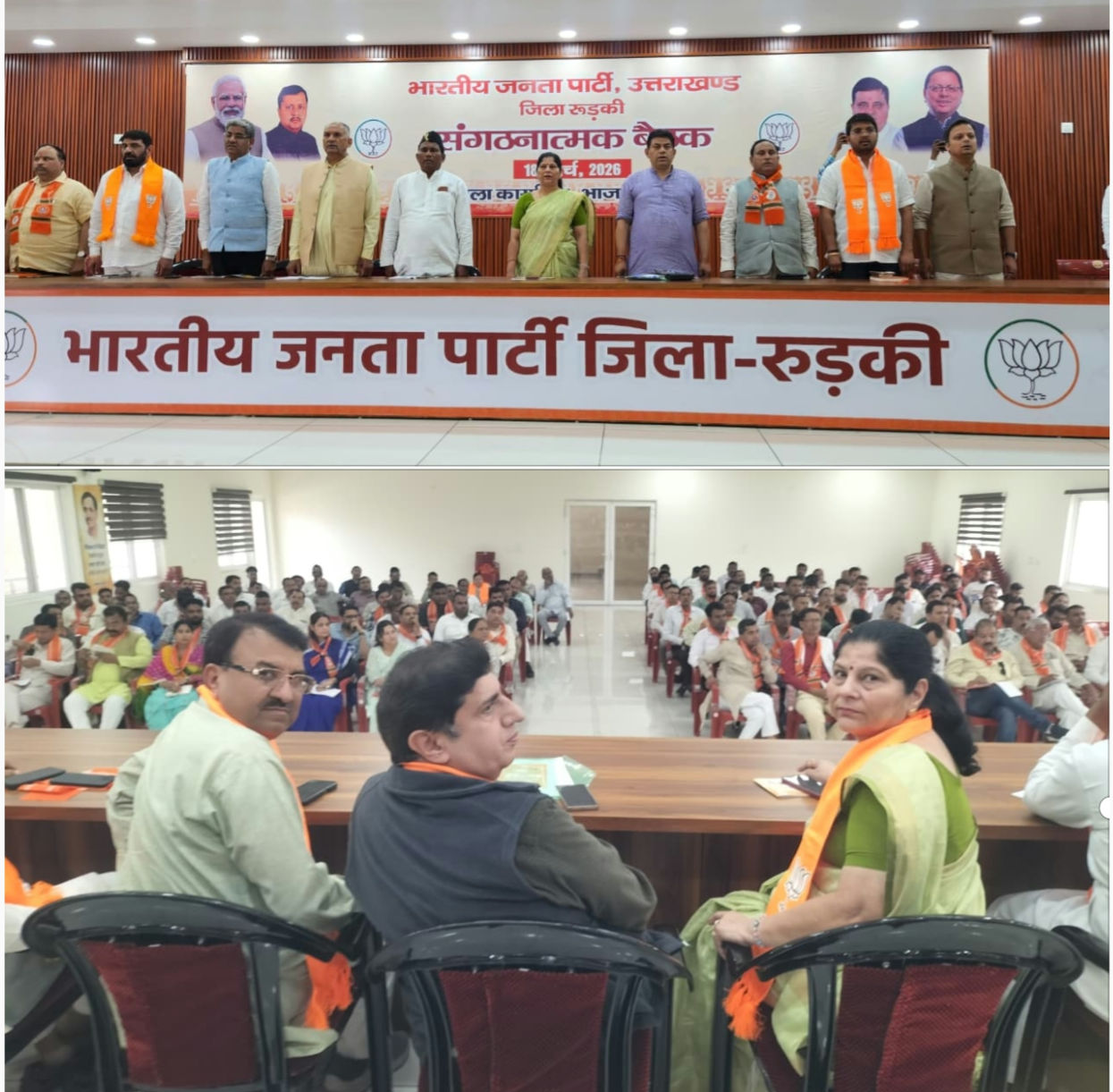 रुड़की। भारतीय जनता पार्टी जिला कार्यालय में आज एक महत्वपूर्ण संगठनात्मक बैठक का आयोजन किया गया, जिसमें पार्टी की नीतियों एवं सरकार द्वारा संचालित जनकल्याणकारी योजनाओं को आमजन तक प्रभावी ढंग से पहुंचाने पर विशेष जोर दिया गया। बैठक में पार्टी पदाधिकारियों को संगठन को और अधिक सशक्त एवं सक्रिय बनाने के लिए आवश्यक दिशा-निर्देश दिए गए।बैठक को संबोधित करते हुए भाजपा जिला अध्यक्ष डॉ. मधु सिंह ने कहा कि पार्टी की मजबूती का आधार उसके कार्यकर्ता हैं। उन्होंने सभी पदाधिकारियों से आह्वान किया कि वे गांव-गांव और वार्ड-वार्ड तक पहुंचकर केंद्र एवं राज्य सरकार की योजनाओं का प्रचार-प्रसार करें, ताकि अधिक से अधिक लोग इन योजनाओं का लाभ उठा सकें।जिला प्रभारी आदित्य चौहान ने अपने संबोधन में संगठनात्मक अनुशासन और समर्पण पर बल देते हुए कहा कि भाजपा एक