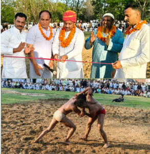 रुड़की।ईद के अवसर पर ईदगाह परिसर में हुए विशाल दंगल का फीता काट उद्घाटन करते हुए पूर्व मेयर गौरव गोयल ने कहा कि स्वस्थ राष्ट्र के निर्माण के लिए स्वस्थ समाज का होना बहुत जरूरी है।आज ग्रामीण क्षेत्र ही नहीं,बल्कि पूरे देश में युवाओं का रुझान खेलों की तरफ बढ़ रहा है और खेलों में दंगल का महत्व अधिक इसलिए बढ़ जाता है,क्योंकि आज का युवा कुश्ती के माध्यम से दंगल में अपनी प्रतिभा का दमखम बहुत जोश खरोश के साथ दिखाने को बेताब है।इस दौरान उन्होंने दंगल में आए सभी पहलवानों का सम्मान किया तथा उनका उत्साह वर्धन करते हुए इस क्षेत्र में और आगे बढ़ाने के लिए प्रेरित किया।दंगल का संचालन इरशाद पहलवान व मासूम पहलवान ने किया।भालू पहलवान,राजू पहलवान,संजय पहलवान,इमरान पहलवान तथा सोनू भाई ने दंगल में अपनी कला का बेहतर प्रदर्शन किया।इस मौके पर वरिष्ठ कांग्रेस नेता कलीम खान,पूर्व पार्षद मोहम्मद सालिम,सभासद मोहम्मद जीशान,फुरकान आलम,मुमताज अहमद उर्फ लूसा,कोच मनीराज,अब्दुल गफ्फार तथा साजिद कुरैशी आदि प्रमुख रूप से मौजूद रहे।