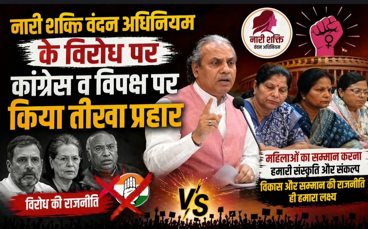 रुड़की।भाजपा जिला कार्यालय में आयोजित प्रेस वार्ता में ‘नारी शक्ति वंदन अधिनियम’ के विरोध को लेकर कांग्रेस और अन्य विपक्षी दलों पर जमकर निशाना साधा।प्रेसवार्ता में भाजपा जिलाध्यक्ष डॉ०मधु सिंह,आपदा प्रबंधन राज्य मंत्री विनय रोहिल्ला और मेयर अनीता देवी अग्रवाल ने दस्तावेजी साक्ष्यों के आधार पर विपक्ष की महिला विरोधी राजनीति को उजागर करने का दावा किया।भाजपा जिलाध्यक्ष डॉ०मधु सिंह ने कहा कि कांग्रेस ने वर्षों तक तकनीकी बहानों,समितियों और लंबी बहसों के जरिए महिला आरक्षण को टालने का काम किया।उन्होंने आरोप लगाया कि पंचायतों में आरक्षण देना कांग्रेस के लिए आसान था,क्योंकि वहां उसका राजनीतिक आधार प्रभावित नहीं होता था,लेकिन संसद और विधानसभाओं में महिलाओं को पर्याप्त प्रतिनिधित्व देने से वह बचती रही।उन्होंने कहा कि आज जब विपक्ष का जनाधार कमजोर हो रहा है,तो वह इस ऐतिहासिक कदम का विरोध कर रहा है।राज्यमंत्री विनय रोहिल्ला ने कहा कि विपक्ष अपनी संभावित हार देखकर समाज को बांटने की कोशिश कर रहा है।उन्होंने आरोप लगाया कि समाजवादी पार्टी धर्म आधारित आरक्षण की मांग उठाकर महिलाओं के अधिकारों को कमजोर करना चाहती है,साथ ही उन्होंने कहा कि टीएमसी जैसे दल अपने राज्यों में महिलाओं की आवाज दबाने के बावजूद संसद में लोकतंत्र की बात कर रहे हैं।डीएमके और उसके सहयोगियों पर उत्तर-दक्षिण विभाजन का झूठा नैरेटिव फैलाने का भी आरोप लगाया।उन्होंने स्पष्ट किया कि परिसीमन से किसी राज्य का प्रतिनिधित्व कम नहीं होगा,बल्कि संतुलित प्रतिनिधित्व सुनिश्चित होगा।मेयर अनीता देवी अग्रवाल ने कहा कि नारी शक्ति वंदन अधिनियम का क्रियान्वयन परिसीमन से जुड़ा है,जिसका उद्देश्य जनसंख्या के अनुपात में संतुलित और समावेशी प्रतिनिधित्व सुनिश्चित करना है।उन्होंने कहा कि विपक्ष तकनीकी मुद्दों को बढ़ा-चढ़ाकर जनता को भ्रमित कर रहा है,जबकि देश की महिलाएं अब जागरूक हैं और सच्चाई समझती हैं।समाजसेविका ममता पंगती ने कहा कि यह केवल एक विधेयक का विरोध नहीं,बल्कि प्रधानमंत्री की लोकप्रियता से उपजी विपक्ष की कुंठा है।प्रेसवार्ता में भाजपा नेताओं ने कहा कि सरकार महिला सशक्तिकरण के लिए पूरी तरह प्रतिबद्ध है और आने वाले समय में देश की महिलाएं अपने मताधिकार की ताकत से महिला-विरोधी मानसिकता रखने वाले दलों को जवाब देंगी।इस अवसर पर जिला महामंत्री सागर गोयल,जिला उपाध्यक्ष सौरभ गुप्ता,प्रिया प्रवेश,सोनू धीमान,जिला मंत्री सतीश सैनी,सचिन झबरेडी,तेजपाल मौर्य,कोषाध्यक्ष नितिन गोयल,मीडिया प्रभारी पंकज नंदा,अंकित गौतम,महिला मोर्चा जिलाध्यक्ष नीलकमल शर्मा,युवा मोर्चा जिलाध्यक्ष विभोर सेठी, महिला मोर्चा प्रदे