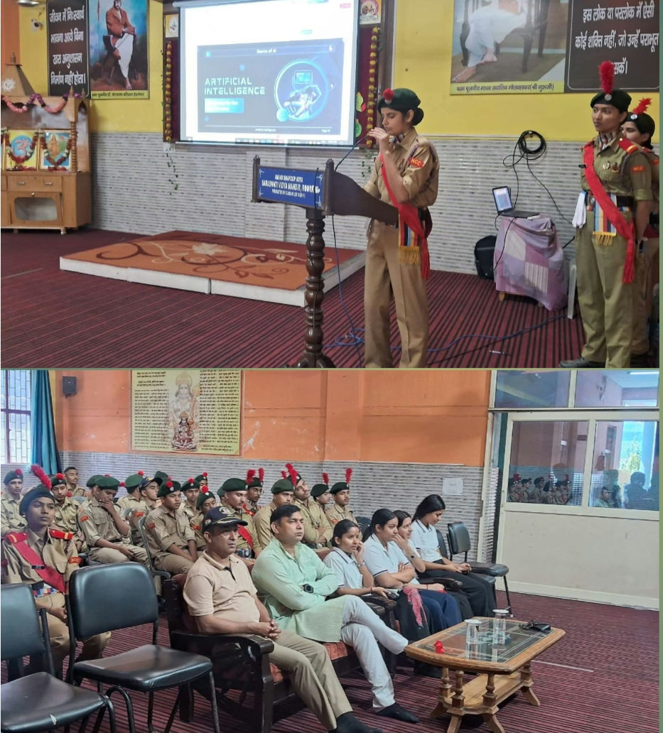 का अनूठा संगम संगोष्ठी एवं जागरूकता अभियान में बढ-चढकर प्रतिभाग किया। कार्यक्रम का संचालन कैडेट दीप्ति एवं कैडेट प्रतिष्ठा ने संयुक्त रूप से किया। विद्यालय के प्रधानाचार्य अमरदीप सिंह ने एनसीसी कैडेट को सम्बोधित करते हुए कहा कि भविष्य की सफलता इस बात पर निर्भर नही करेगी कि हमारे पास कितनी उन्नत तकनीक है। अपितु इस पर निर्भर करेगी की हमने तकनीक का उपयोग कितने उत्तरदायित्व एवं संस्कारो के साथ किया। बिना संस्कारो के सामथ्र्य दिशाहीन होता है। कृत्रिम बुद्धिमत्ता का लाभ तभी सम्भव है, जब वह मानवता के कल्याण के भावना से प्रेरित हो भारत हमेशा से ऐसे ज्ञान का समर्थन करता है। जो राष्ट्र, समाज को जोड़ने का काम करें।
