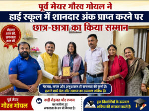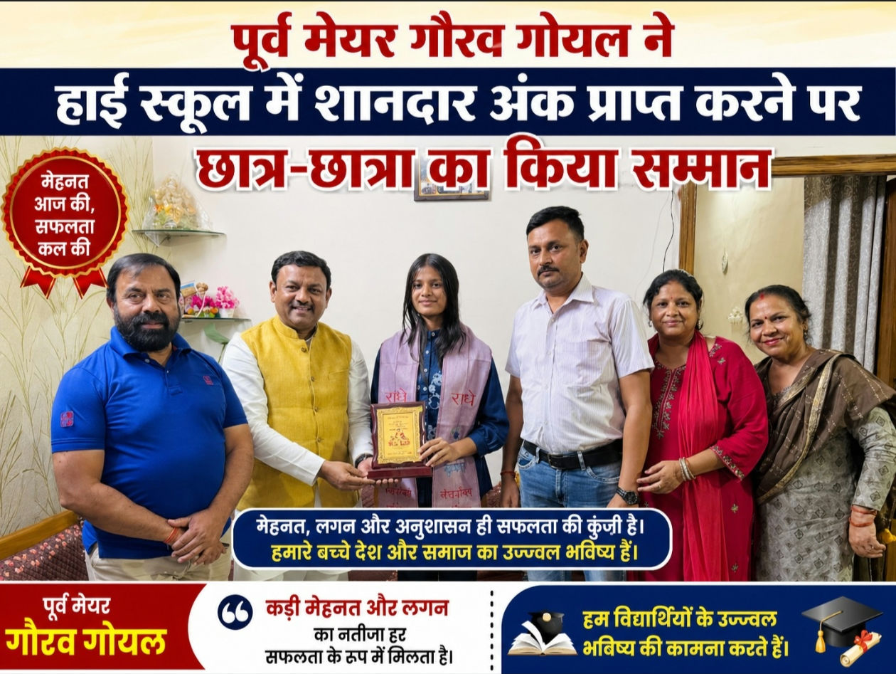 परिश्रम और सही मार्गदर्शन से कुछ भी है संभव नहीं होता।पूर्व मेयर गौरव गोयल ने उनके माता-पिता तथा अध्यापकों को भी बधाई दी।इस अवसर पर राजीव गुप्ता,दीपांकर गुप्ता,दिलिप मेंहदीरत्ता,पंकज विश्नोई,ब्रजमोहन मौर्य,जगदीश शरण,अनुप शर्मा आदि प्रमुख रूप से मौजूद रहे।