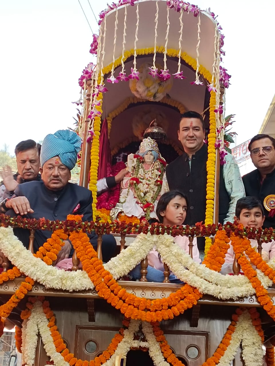 श्री श्री 1008 श्री पंडित रामगोपाल शर्मा जी श्री अलवर वाले बाबा जी का 113 वां जन्मोत्सव! श्री श्री 1008 श्री पं. रामगोपाल शर्मा जी महाराज श्री अलवर वाले बाबा जी का 113 वां जन्मोत्सव गत-विगत वर्षों की भांति इस वर्ष भी गोपाल भवन श्री हनुमान मंदिर निरंजनी अखाड़ा रोड हरिद्वार में बड़े हर्षोल्लास के साथ आज 18 दिसंबर को गद्दी नशीन महाराज श्री हरिप्रसाद शर्मा जी (झावल) महाराज जी श्री अलवर वाले बाबा जी के द्वारा एवं भक्तों के द्वारा बड़े हर्षोल्लास व धूमधाम से मनाया गया. आज 18 दिसंबर को श्री अलवर वाले बाबा जी के जन्मोत्सव के अवसर पर हर की पैड़ी पर गद्दी नशीन महाराज श्री हरप्रसाद शर्मा जी श्री अलवर वाले बाबाजी, विकास शर्मा एवं रियान शर्मा के द्वारा श्री गंगा जी का विधि विधान के साथ पूजन अर्चन हजारों भक्तों के साथ किया गया तत्पश्चात हर की पेडी से जन्मोत्सव के अवसर पर एक विशाल शोभायात्रा अपर रोड, कोतवाली, हार्मिलाप, हॉस्पिटल, ललतारो पुल, शिव मूर्ति चौक, जस्सा राम रोड होते हुए गोपाल भवन श्री हनुमान मंदिर निरंजनी अखाड़ा रोड हरिद्वार तक निकाली गई. शोभायात्रा मैं 4 प्रमुख बैंड, गणेश जी की झांकी, श्री हनुमान जी की विशाल झांकी, श्री सतनारायण भगवान जी की झांकी, श्री श्री 1008 श्री पंडित रामगोपाल शर्मा जी श्री अलवर वाले बाबा जी की झांकी एवं एक विशाल रथ जिस पर स्वयं गद्दी नशीन महाराज श्री हरिप्रसाद शर्मा जी (झावल) श्री अलवर वाले बाबा जी, विकास शर्मा (पुत्र) अश्विका शर्मा (पोत्री) एवं रियान शर्मा (पोत्र) सवार थे. इस विशाल शोभायात्रा के 4 पड़ाव में हजारों भक्तों ने श्री अलवर वाले बाबा जी के दर्शन किए. शोभायात्रा में इस बार पिछली शोभा यात्राओं से अधिक भक्तों की उपस्थिति रही. पूरी शोभायात्रा में भक्तों के द्वारा विभिन्न विभिन्न प्रकार की व्यवस्थाओं के द्वारा शोभा यात्रा को व्यवस्थित रूप से संचालित किया गया. श्री अलवर वाले बाबा जी के भक्त इस विशाल शोभायात्रा में दिल्ली, हरियाणा, राजस्थान, पंजाब एवं उत्तर प्रदेश के विशेषकर, आकर शामिल हुए. जन्मोत्सव का कार्य कार्यक्रम गत 3 दिन से श्री हनुमान मंदिर में चल रहा है. विशाल शोभायात्रा में यातायात व्यवस्था में लगे हुए कार्यकर्ताओं के द्वारा शोभायात्रा का संचालन एवं ट्रैफिक की व्यवस्था को व्यवस्थित तरीके से निकालते हुए संचालित किया गया.