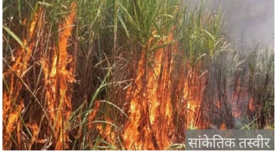 लक्सर के डूंगरपुर गांव के पास गन्ने के खेतो में आग से मची अफरा तफरी,