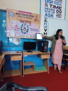 *राष्ट्रीय बालिका दिवस* भारत विकास परिषद#अविरल गंगा शाखा रुड़की ने दिनांक 30/1/23 सोमवार को भारत विकास परिषद महिला एवम् बाल विकास प्रकल्प के अंतर्गत *अभयोदया* कार्यक्रम राष्ट्रीय बालिका दिवस को जागरूकता सप्ताह के रूप में मना रही है। शाखा ने ये कार्यक्रम राजकीय कन्या इंटर कॉलेज रुड़की में बालिकाओं को मेंसुरेशन हाइजीन स्वास्थ्य संबंधित जानकारी एक टॉक के द्वारा स्कूली छात्राओं के मध्य रखी जिसकी मुख्य वक्ता dr. सौम्या पांडे थी ।उन्होंने छात्राओं को उनके स्वास्थ्य,पोषण और मासिक धर्म से जुड़ी सही जानकारी और इससे संबंधित स्वच्छता के उपायों के बारे में बताया और बालिकाओं से प्रश्न उत्तर का आदान प्रदान किया अर्थात बालिकाओं के संदेह को दूर किया की कैसे स्वयं को स्वस्थ रख सकती है।मासिक धर्म के दौरान स्वच्छता,सैनिटरी पैड का सही इस्तेमाल और सही तरीके से नैपकिन का डिस्पोजल जरूरी है।उपयोग किए गए सैनिटरी नैपकिन को खुले में फेकने से कीटाणुओ और बीमारियो के फैलने का खतरा होता है।नैपकिन को टॉयलेट में फ्लश न करे ।मासिक धर्म के दौरान पानी ज्यादा पिए।ऐसी लाभकारी जानकारी dr.सौम्या ने अपने वक्तव्य में दी।55 स्कूली छात्राओं ने इस कार्यक्रम का लाभ उठाया।स्कूल की प्रधानाचार्या जी ने शाखा के इस कार्यक्रम की बहुत सराहना की और आगामी कार्यक्रम के लिए शाखा को प्रेरित किया।प्रांतीय महिला संयोजिका सुगंध जैन जी,