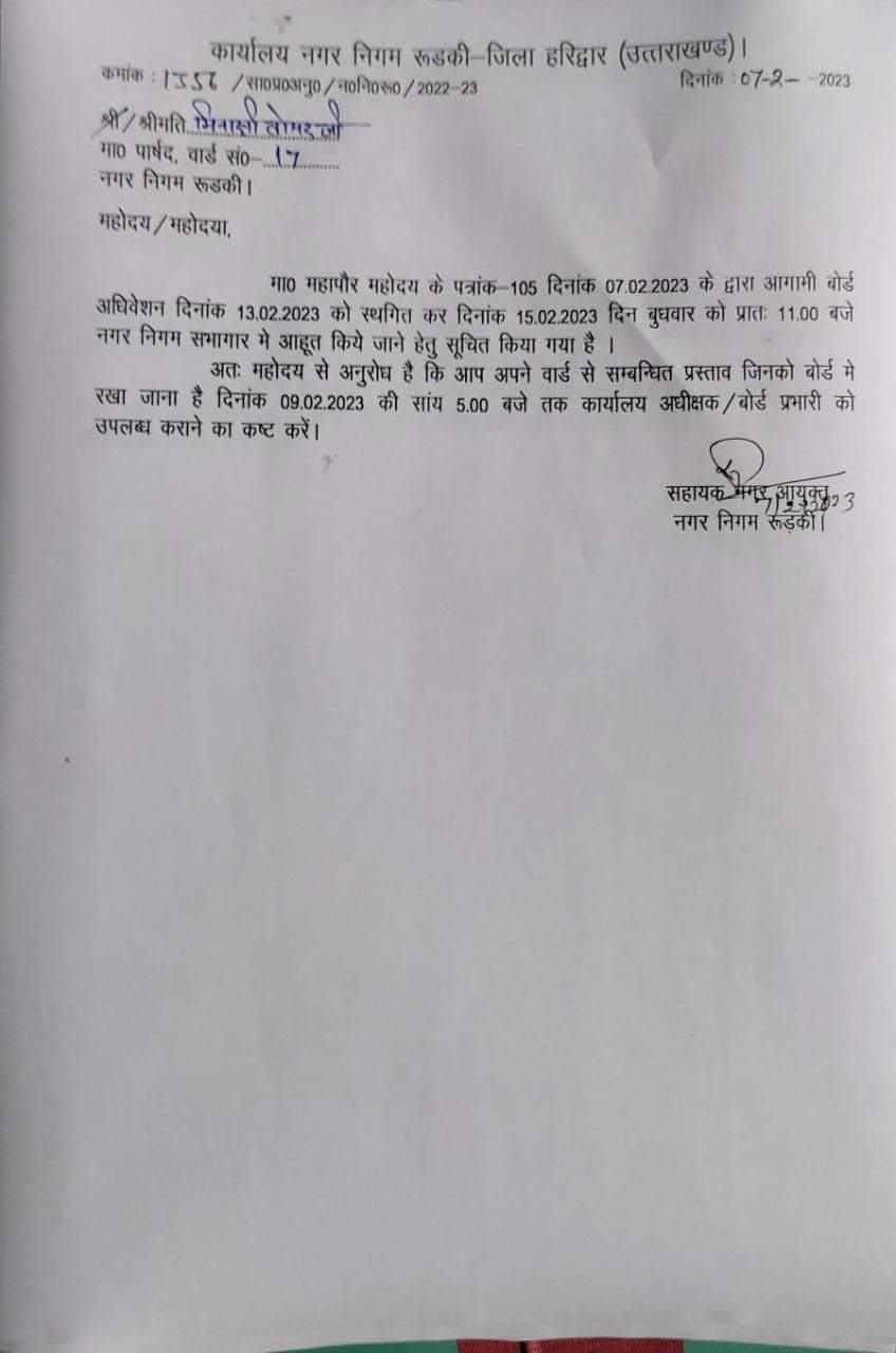 नगर निगम रुड़की बोर्ड की बैठक फिर टली, अब 15 फरवरी तारीख निर्धारित की गई। Posted on February 8, 2023 by Samarth Bharat news Share this: Share on X (Opens in new window) X Share on Facebook (Opens in new window) Facebook Related Post navigation नगर विधायक प्रदीप बत्रा द्वारा आज अपने कैंप कार्यालय पर आर्थिक सहायता राशि के चेक जरूरतमंद लोगों को बांटे गए जिनमें मुख्य रूप से गरीब परिवार की कन्या के विवाह हेतु शारीरिक रूप से कमजोर व्यक्तियों हेतु एवं जो लोग चिकित्सा से प्रभावित रहते हैं ऐसे लोगों को आज कैंप कार्यालय पर मुख्यमंत्री राहत कोष योजना के चेक वितरित किए गए।तुर्की-सीरिया भूकंप में मरने वालों की संख्या 7200 से अधिक पहुंची Samarth Bharat news Leave a Reply Cancel replyYour email address will not be published. Required fields are marked *Comment * Name * Email * Website Save my name, email, and website in this browser for the next time I comment.