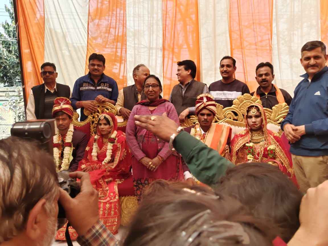 इस तरह के आयोजन दुर्गा मंदिर में पहले भी होते रहे हैं और १०० शादिया पूरी करा चुकी है दुर्गा चौक मंदिर समिति । पंडित दुर्गा मंदिर सागर जी ने विधि विधान के साथ आकाश सिंह संग रोली सिंह दिल्ली से तथा राम कुमार संग कुमकुम सहारनपुर से दोनों कन्याओं के फेरे करवाएं। कन्याओं को आशीर्वाद देने के लिए सचिन गुप्ता के साथ शहर के अनेक लोग मंदिर में पहुंचे । श्री मां दुर्गा चौक मंदिर समिति के प्रधान श्री अशोक वर्मा जी ने बताया की बारात की