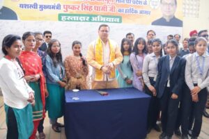 देहरादून/रूद्रपुर। मुख्यमंत्री पुष्कर सिंह धामी ने गुरुवार को राधा स्वामी सत्संग व्यास रुद्रपुर में प्रतियोगी परीक्षाओं की तैयारी कर रहे अभ्यर्थियों एवं विद्यार्थियों द्वारा आयोजित हस्ताक्षर अभियान में प्रतिभाग किया। मुख्यमंत्री द्वारा प्रतियोगी परीक्षाओं में पारदर्शिता एवं सुचिता को सुनिश्चित कराने के लिए राज्य में नकल विरोधी कानून लाये जाने पर प्रतियोगी परीक्षाओं की तैयारी कर रहे अभ्यर्थियों एवं विद्यार्थियों ने मुख्यमंत्री का आभार व्यक्त किया।