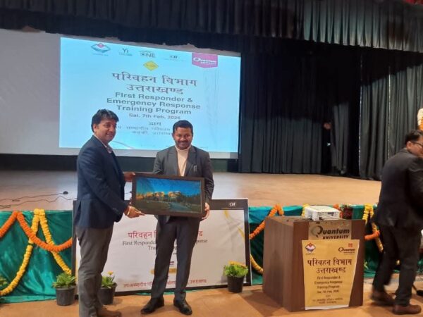 रुड़की। क्वांटम कॉलेज/क्वांटम यूनिवर्सिटी में सड़क सुरक्षा एवं फर्स्ट रेस्पॉन्डर प्रशिक्षण कार्यक्रम का आयोजन किया गया, जिसमें युवाओं को दुर्घटना के समय त्वरित सहायता, कानूनी संरक्षण एवं जीवन रक्षक तकनीकों